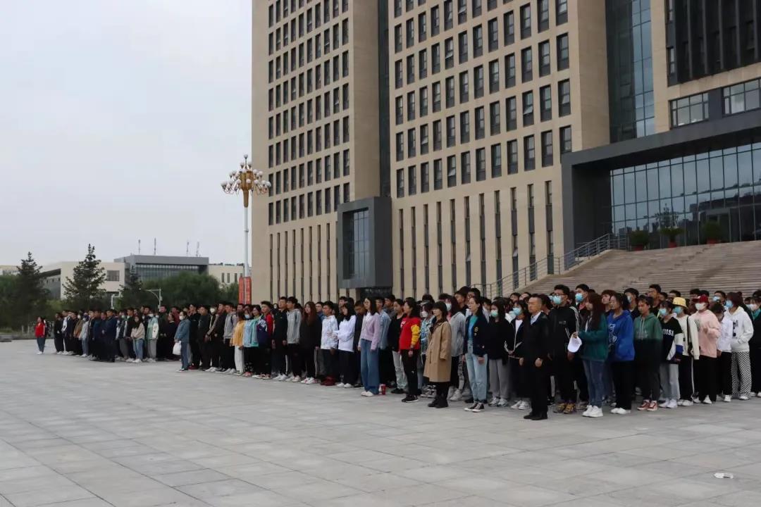 在新区生科楼前举行了升旗仪式,学院全体师生参加此次活动。