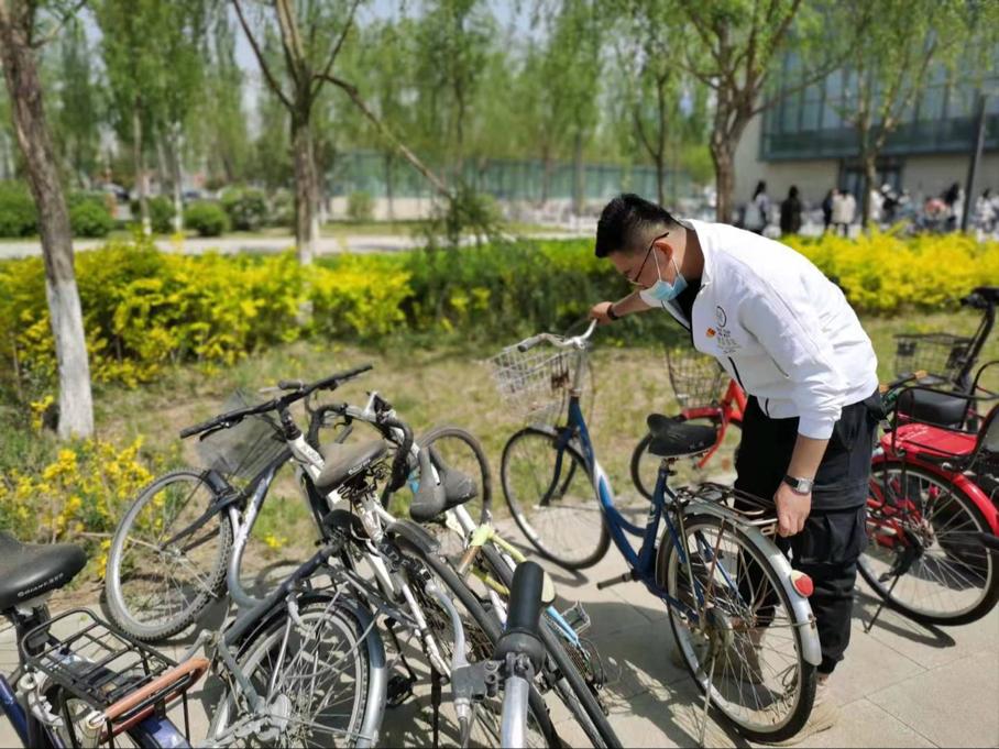 第四项,我为师生办实事。活动最后全体党员在生科楼旁的自行车停车场整理车辆,把每一辆乱停放的自行车摆放整齐,用行动践行了党的服务理念。