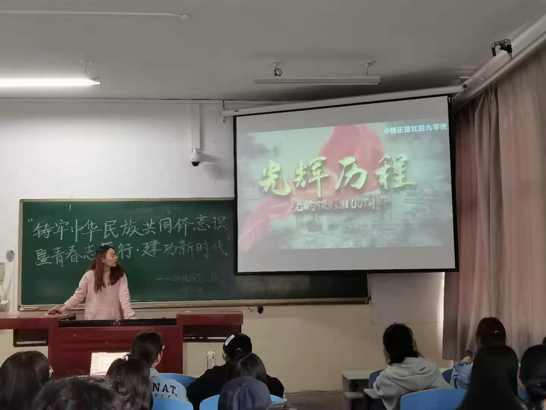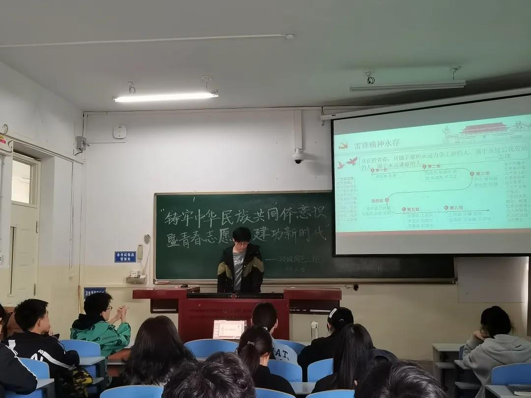 本次活动中,团支书吕姝睿带领同学们学习了有关铸牢中华民族意识的相关政策,向大家传达了中华民族共同体意识是国家统一之基、民族团结之本、精神力量之魂。在大家分组讨论学习后一起观看了建党一百周年的记录视频。紧接着,吕姝睿带领同学们一起学习雷锋同志的“螺丝钉精神”。她讲到:“螺丝钉精神是自觉地把个人融入党和人民的事业之中去,个人服从整体,服从组织,忠于职守,兢兢业业,干一行爱一行,全心全意为人民服务的精神”。随后,张阔洋同学与同学们分享了自己寒假回家做志愿者的经历,体会到了奉献的乐趣。活动最后,班主任田原老师对团日活动进行了总结,强调了民族团结是最重要也是最基础的,并对同学们传达了新学期的祝福。