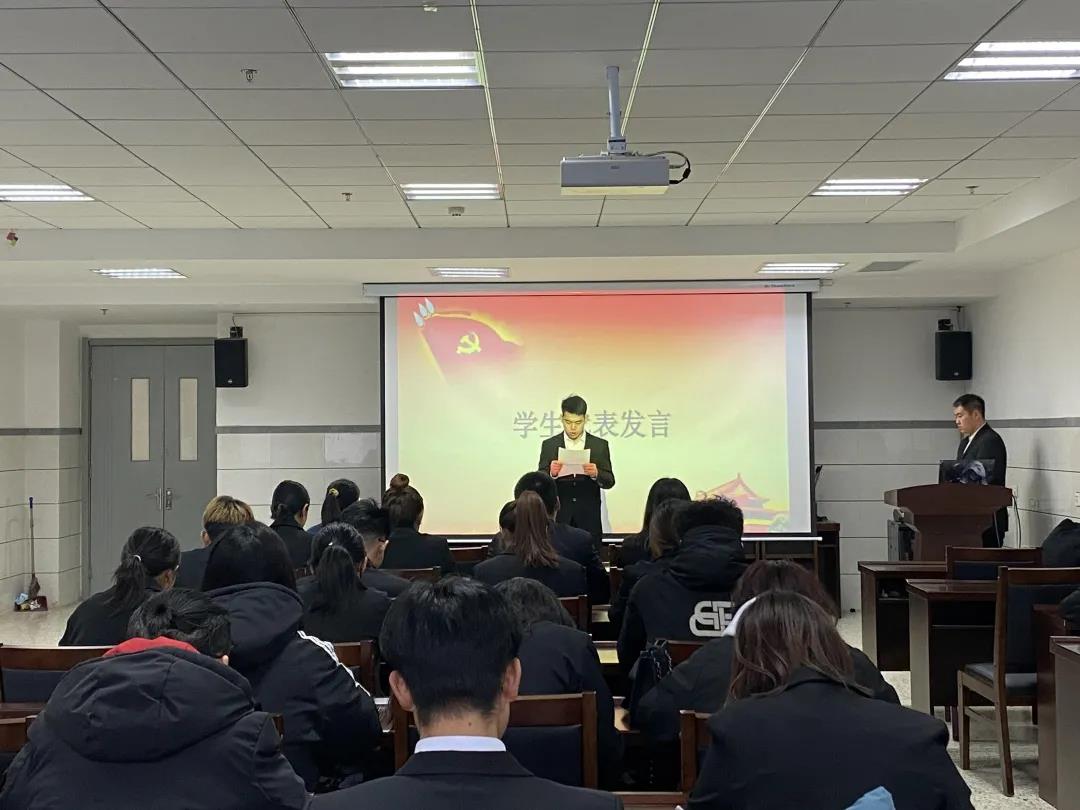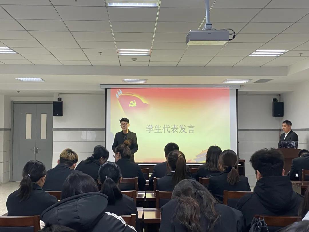 在严肃庄重的氛围下,全体成员起立,奏唱国歌。随后,青马班优秀学员代表发言。战金龙讲到,作为学生干部更要加强学习,充分扩展自己的思维,努力提高政治理论素养,发扬艰苦奋斗、顽强拼搏、勇于奉献的精神;刘冬雪分享了她的收获,她表示通过此次青马班的培训,在学习中更加坚定了对马克思主义的信仰,也明白如何运用马克思主义解决实际生活与工作中的问题;袁和权提出同学们应该树立正确价值观、人生观,坚定不移地跟着党的步伐走,努力成长为立场坚定、素质全面的青年马克思主义者。接着,团委老师郝凤英总结讲话,她强调:每一次实践活动、理论学习都是有意义,做事不能光做而不去思考,白白消磨时光,应当学会从中收获总结,汲取经验,由此来提升自己,用理论指导实践,做一个青年马克思主义忠实的追随者。最后,结业典礼在响亮的团歌中结束。