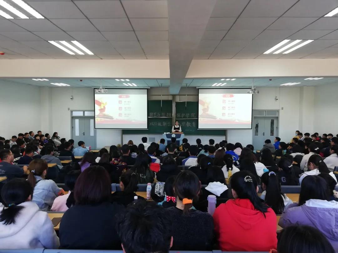 在南教102召开2020级新生入学教育第一课。团委老师郝凤英、学办老师尚飞出席了本次活动,238位新生参加本次活动。