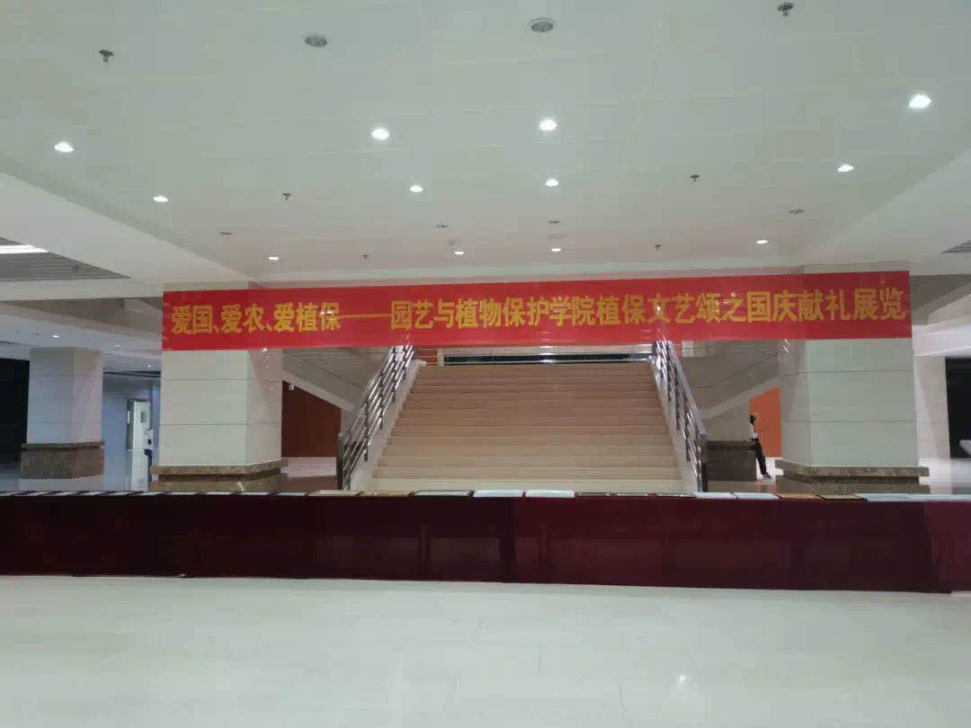 于生科楼一楼大厅举办了首届植保文艺颂之国庆献礼展览。