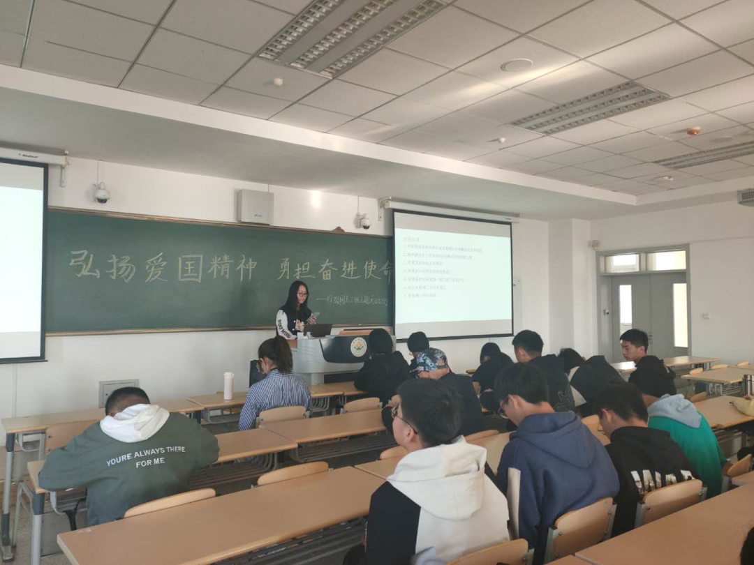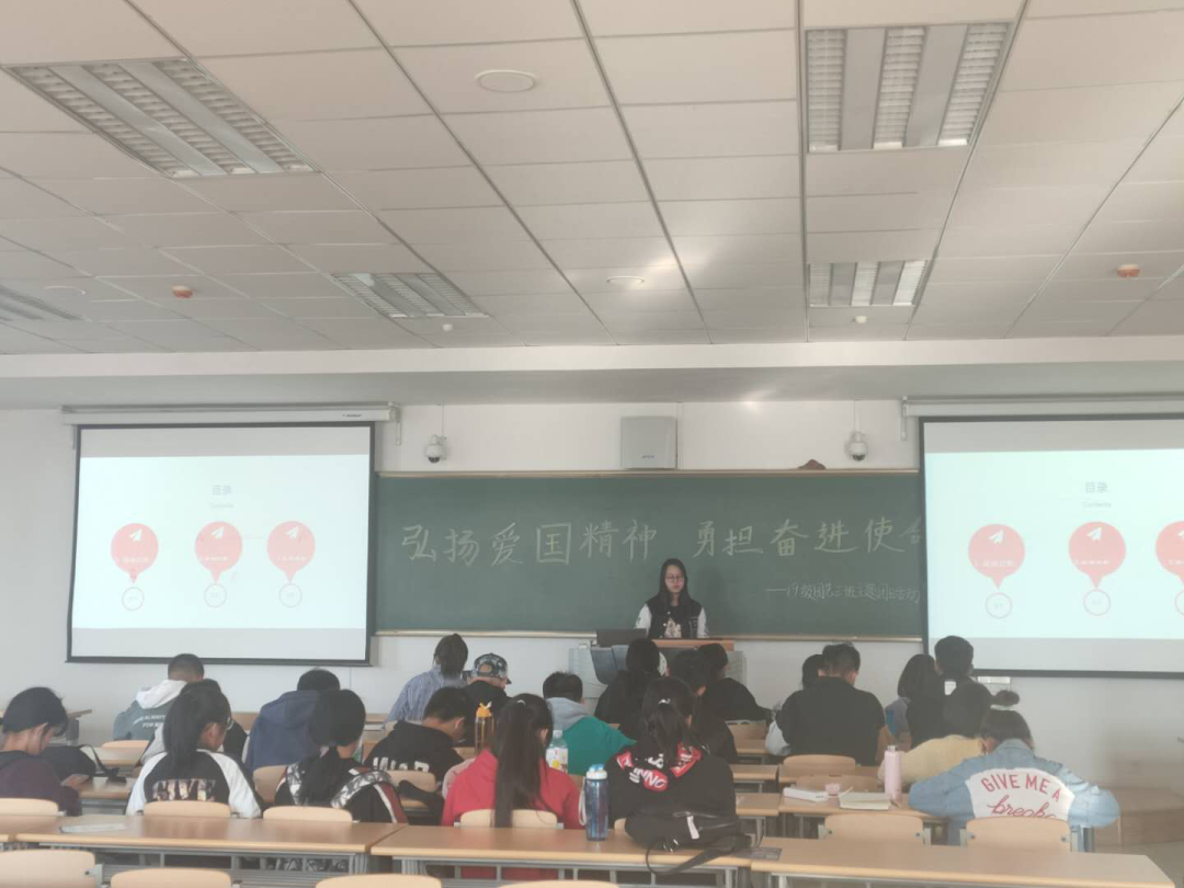 活动伊始,主持人组织大家全体起立唱国歌。伴随着庄严的国歌此次团日活动拉开了帷幕。随后,同学们积极参与知识竞答,正确地回答出了关于中国取得的辉煌成就等相关问题,个别回答不到位的问题由主持人补充。主持人接着为大家介绍了中国取得的成就,拓宽大家的知识面。活动最后,主持人对宿舍和校园安全等的注意事项进行了说明,例如宿舍用电、出行做好个人防护等事项。