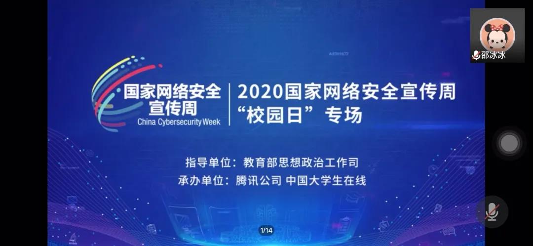 教师与学生代表于9月16日晚共同参加“聚力青春 守护安全”网络安全直播课活动。本次活动由酷爱成人网部员张婷主持。