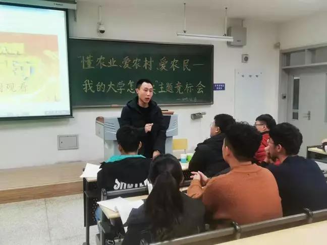 12月8日晚于南教218教室举办“懂农业、爱农村、爱农民——我的大学怎么读”团日活动竞标会。出席本次竞标会的有学办老师白香荣、分团委学生会办公室主任庞博、分团委学生会酷爱成人网部长胡雨松、学工助理金顺、邓全才。