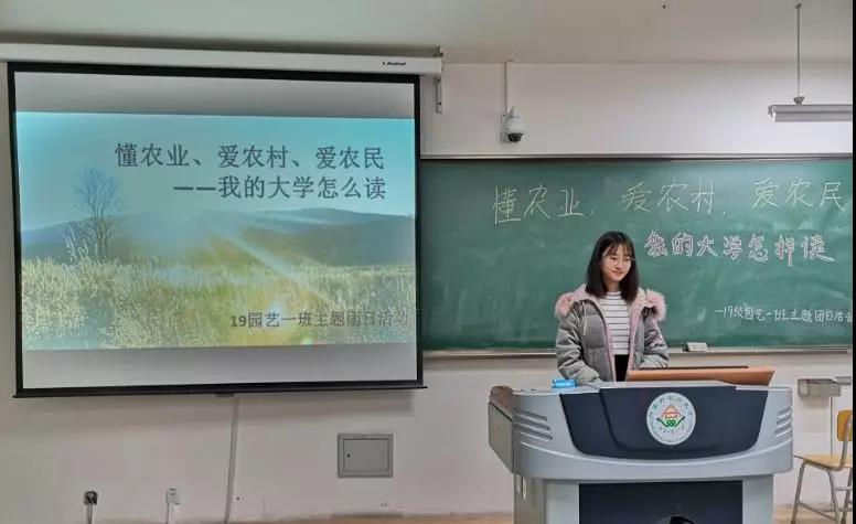 11 月 19 日下午2:30,19 级园艺一班全体同学于南教 318 开展“一懂两爱--我的大学怎么读”主题团日活动,本次活动由团支书于世杰同学主持。