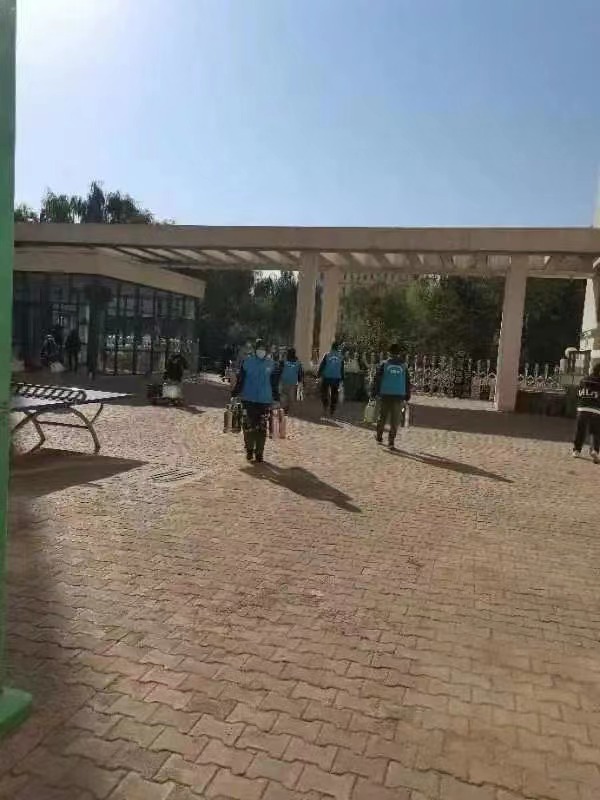 志愿者为封控学生提供热水与帮助,大家分工明确、迅速投入自己的工作岗位中,他们有的卸运,有的在分发,一壶壶水、一次次的往返,每一位志愿者都撸起了袖子,铆足了劲,不退缩、不怕苦,努力为保障封控学生的正常生活尽自己的一份力,平凡的力量闪烁出不平凡的光芒。