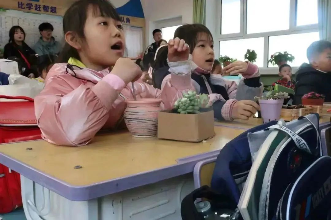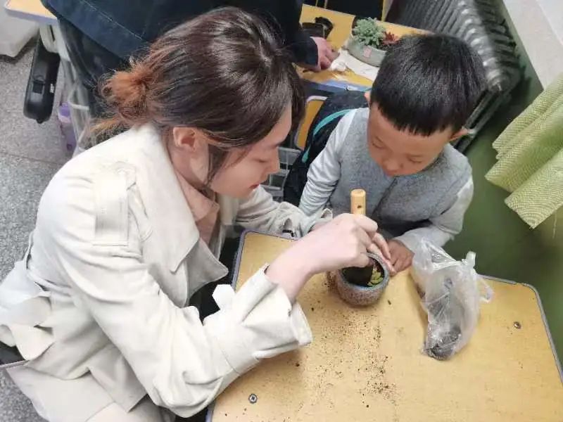 附属小学一年级(2)班开展“‘植’此相遇,绿色同行”多肉植物盆栽体验活动。