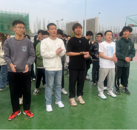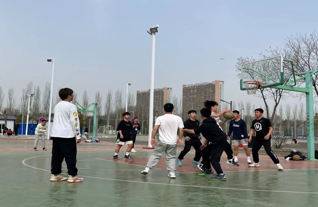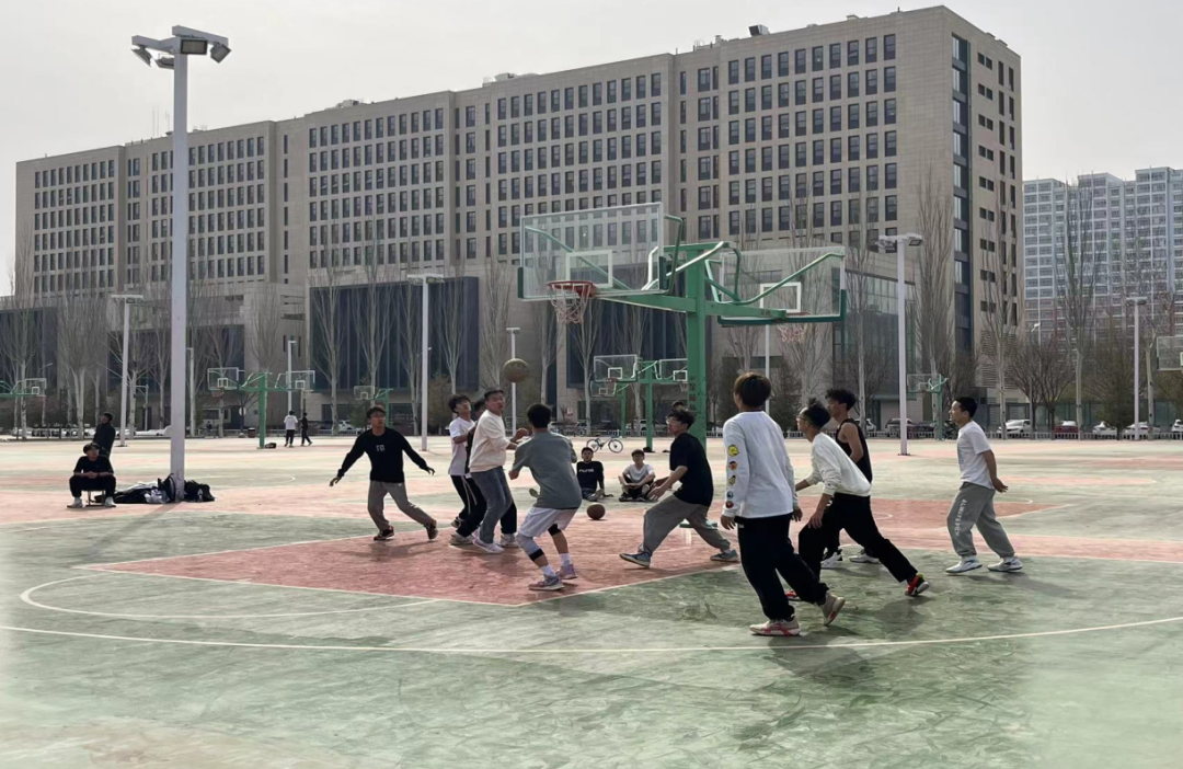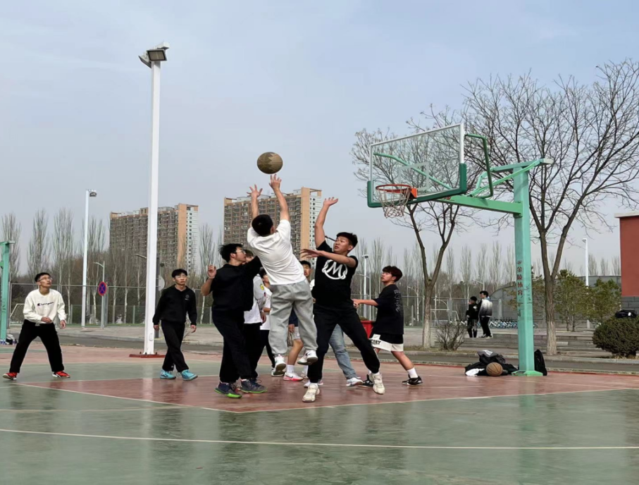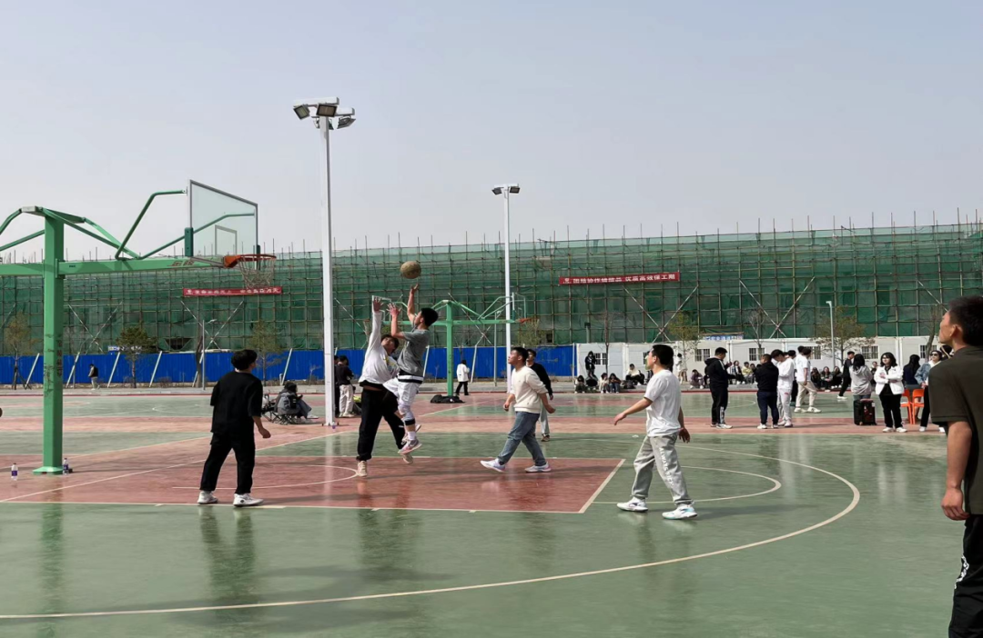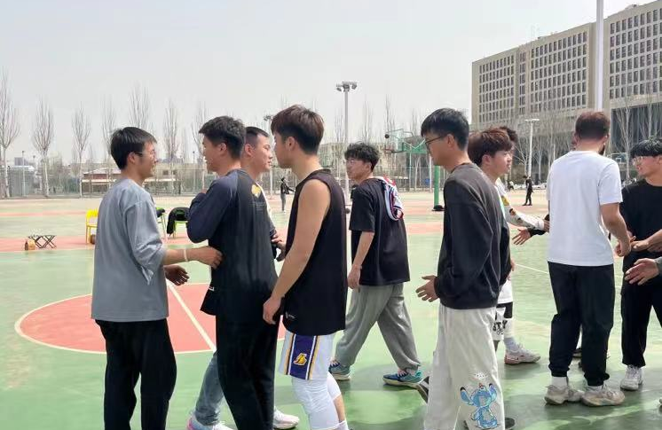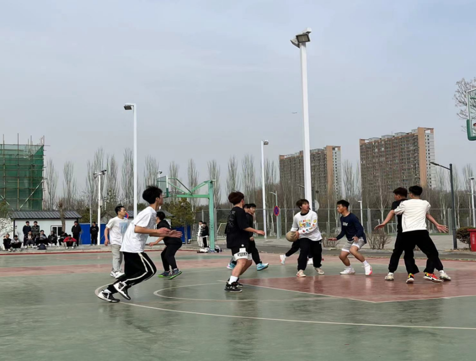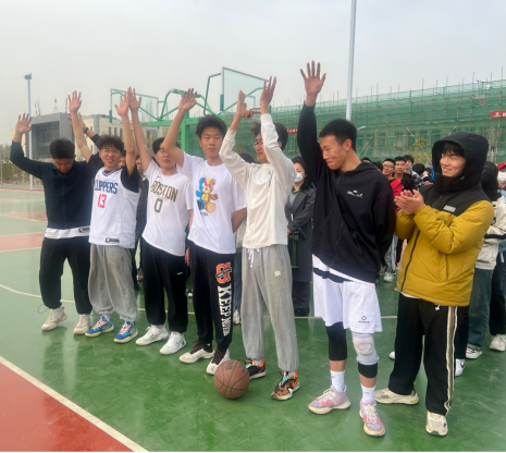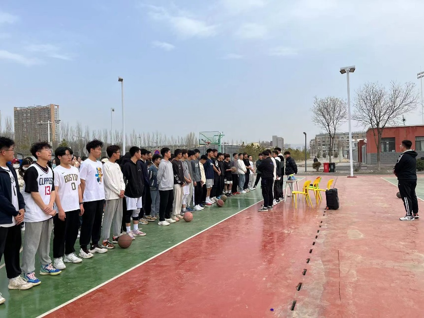 在新区篮球场顺利举行2022级学生篮球比赛。2022级全体学生出席观看比赛。