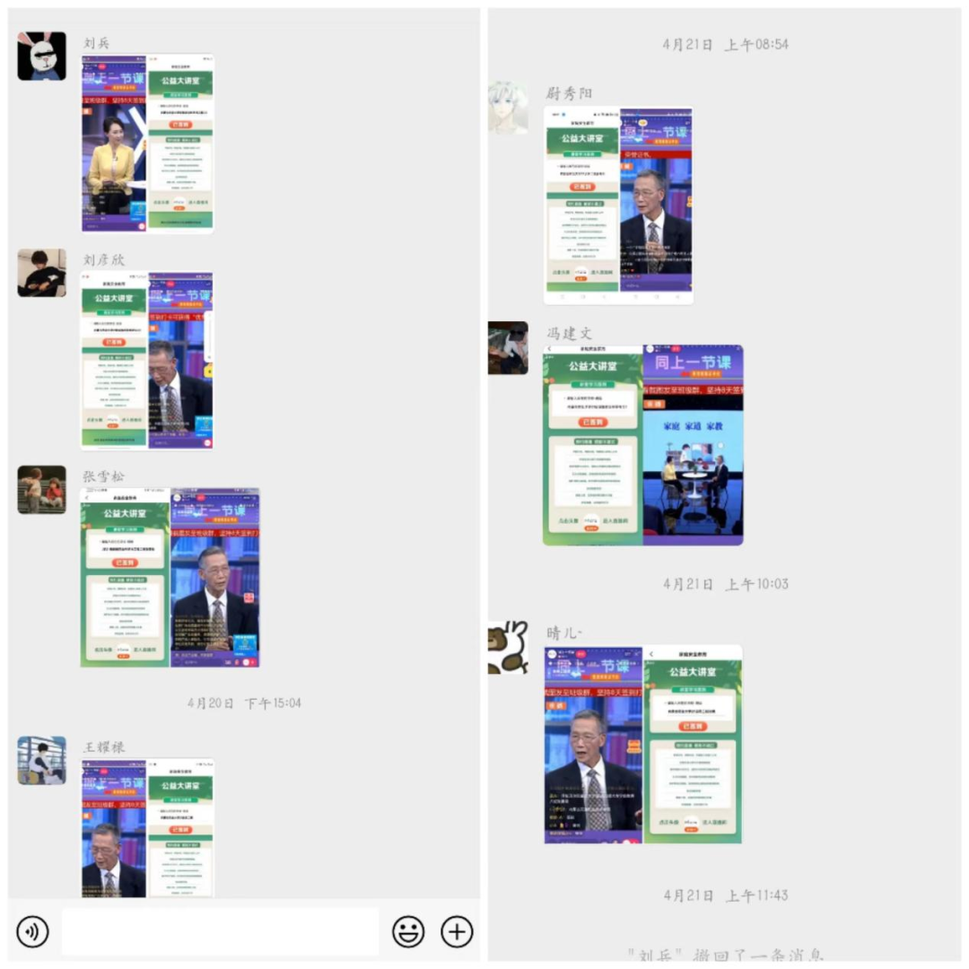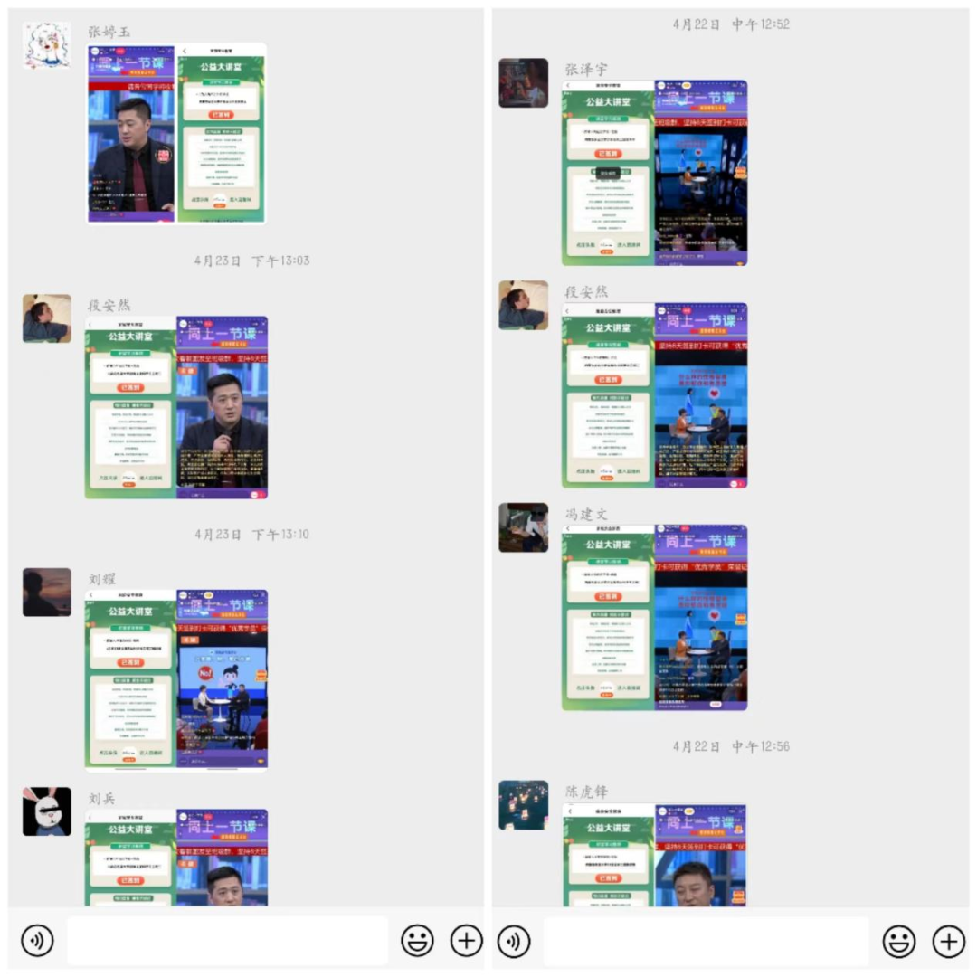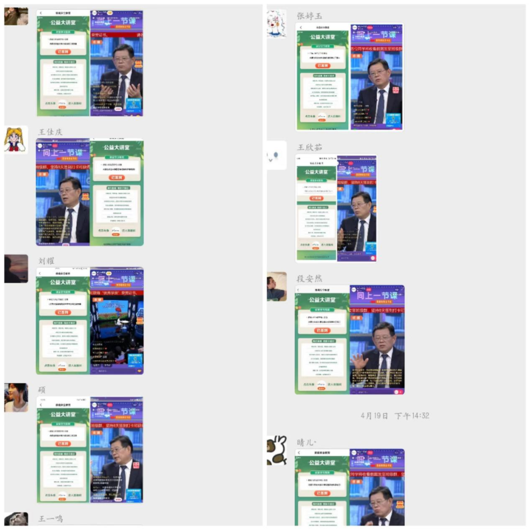 学生积极观看,认真连续签到打卡8天,并将学习截图发至班级群。