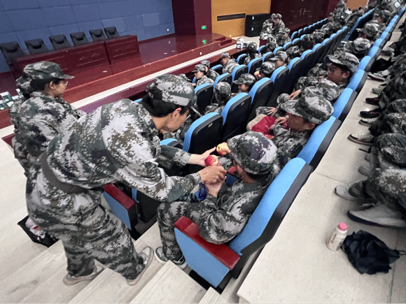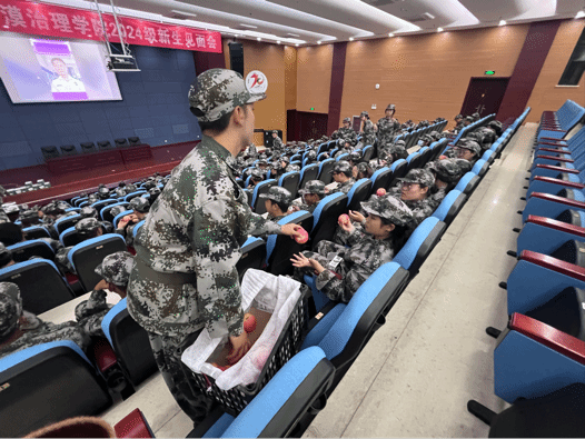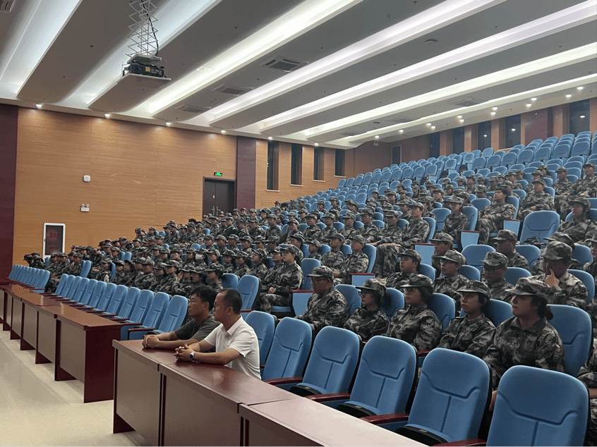 党委副书记李艳、辅导员尚飞、张东于生科楼二楼报告厅亲切慰问了2024级全体军训学生。