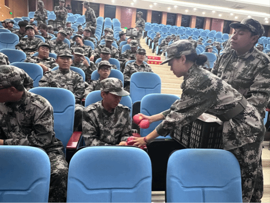活动中,党委副书记李艳上台讲话,她肯定了同学们军训期间的努力,并对参训同学不畏烈日、坚持不懈的精神给予了赞扬。在讲话中,她提到了大家要珍惜军训时光,希望同学们在接下来的训练中,能够继续发扬吃苦耐劳的优良作风,展现出属于园保学子的青春风采。李书记的讲话给新生们带来了极大的鼓舞,大家纷纷表示将以坚定的信念和不懈的努力认真完成接下来的训练,不负学院的期盼。最后,由各班级负责人为大家分发慰问品,大家也切实感受到了学院对大家的关怀与温暖。