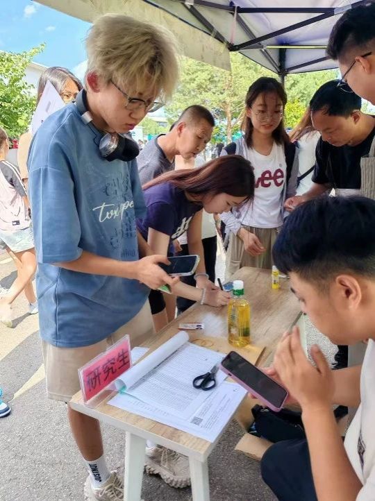 新生报到处,来自全国各地的新生汇聚于此,共同开启他们的大学生活新篇章。