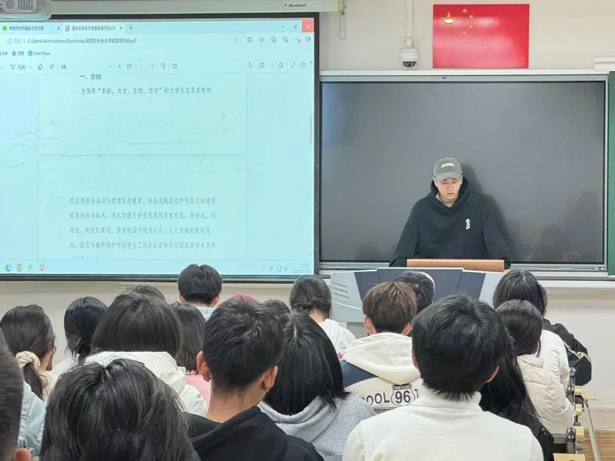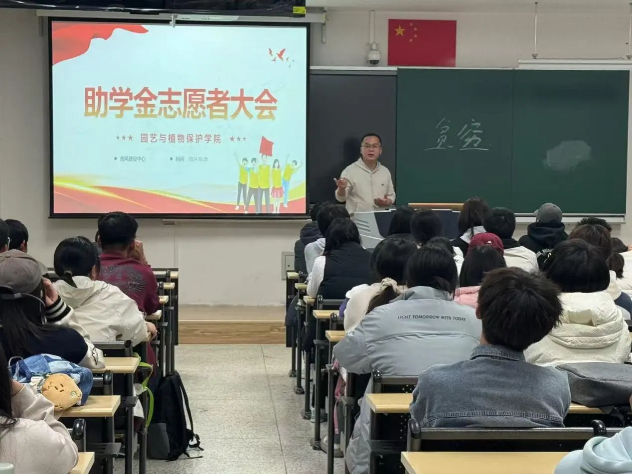 于南教420教室召开助学金志愿者大会。辅导员尚飞、舍风建设中心和心理健康中心成员及2024级获得助学金的同学们参加了本次会议。