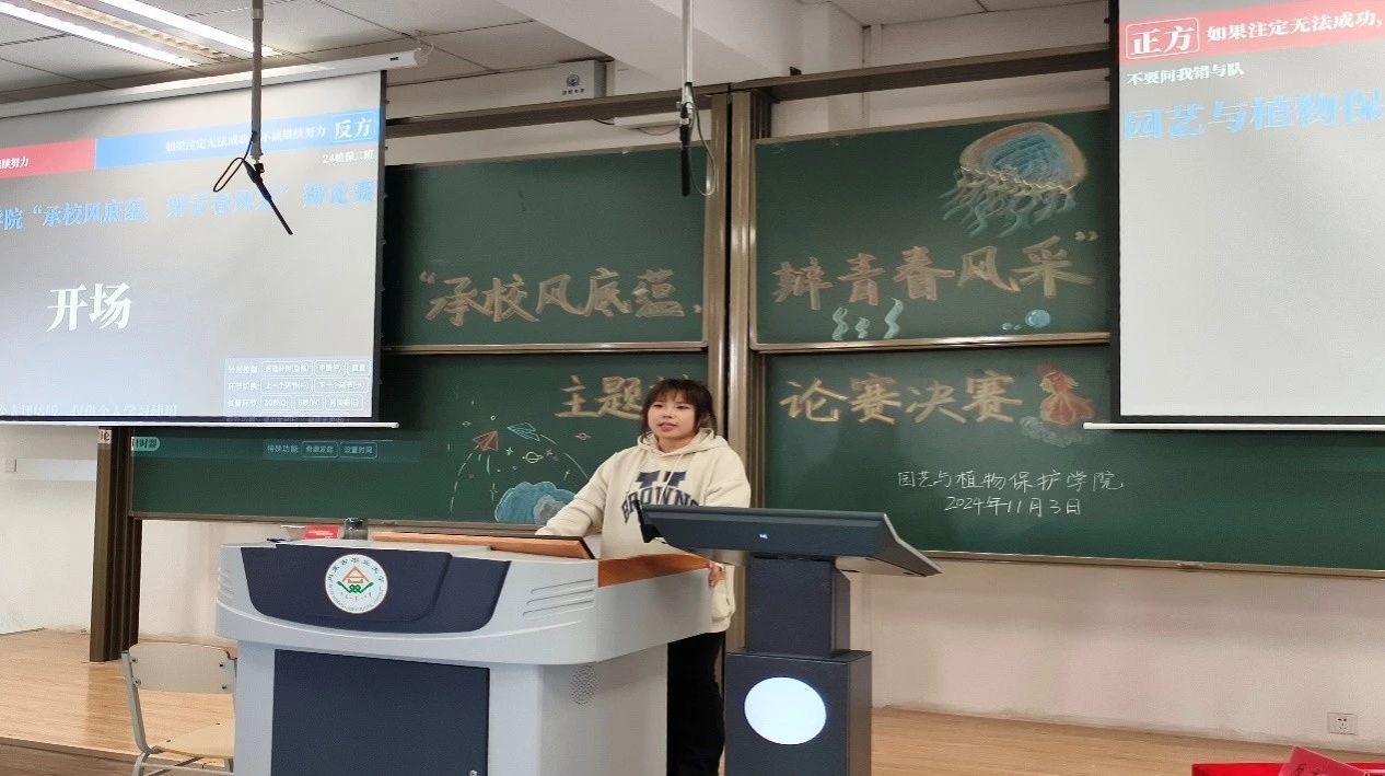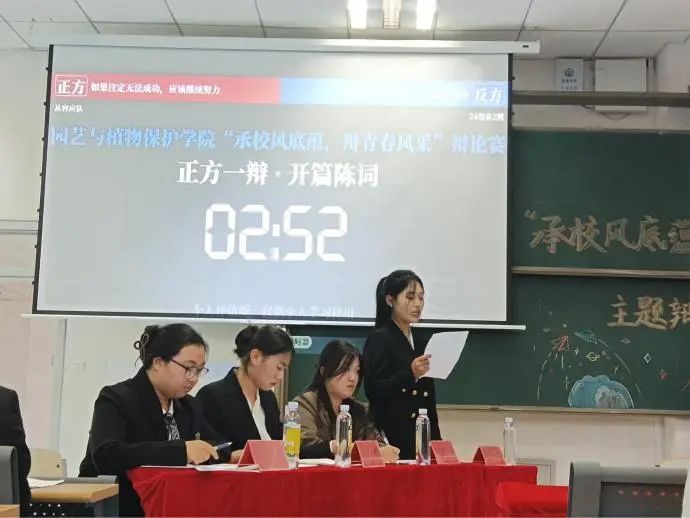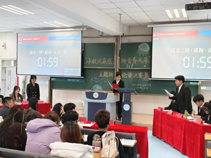 于南教104教室举办“承校风底蕴,辩青春风采”辩论赛决赛。双方辩手围绕“如果注定无法成功,应不应该继续努力”这一辩题,展开了一场思想与才智的对决。