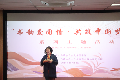 校关工委副主任孙伯筠上台讲话,表达对此次主题活动成功举办的热烈祝贺,她指出同学们要通过多读书来学好专业知识,并鼓励同学们要保持思想活力,启迪聪颖智慧,滋养浩然之气。