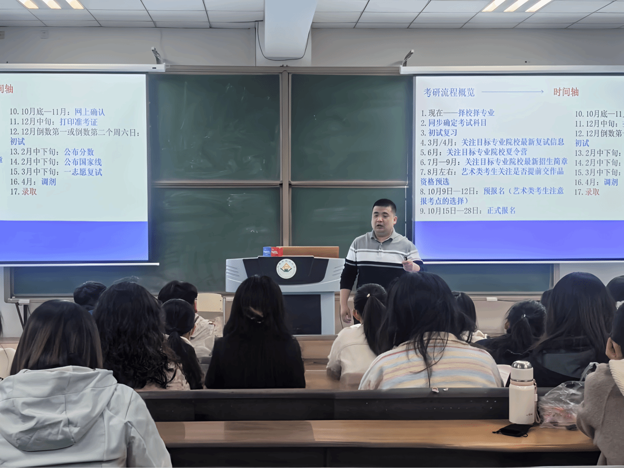 讲座中,王老师凭借丰富的教学经验和对考研趋势的精准把握,围绕备考规划、科目重点、时间管理等核心问题展开深入讲解。在复习规划方面,老师详细拆解备考过程,从基础夯实、强化提升到冲刺模拟,为学生定制阶段性目标,帮助同学们有条不紊推进复习计划。针对英语、政治、专业课等不同科目,也分别给出了针对性的复习策略,强调知识体系搭建与答题技巧训练的重要性。