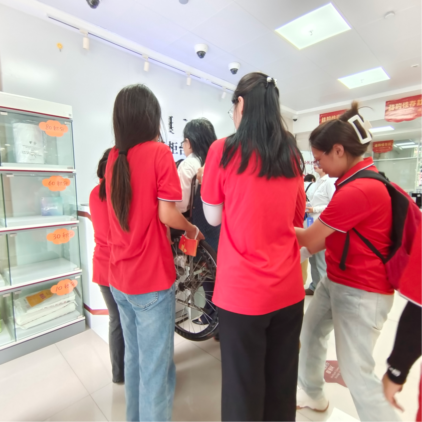 为提高学生社会服务意识,增强社会责任感。实践队员们下午来到叶大姐家,陪同叶大姐前往银行办理社会保障卡。在路上叶大姐不仅耐心地为志愿者们指路,她还像家人、朋友一样与志愿者们聊天,让原本枯燥与乏味的路途变得富有趣味。为了使叶大姐能被高处的照相机识别,队员们齐心协力将力量凝聚到一处将她托起,用实际行动践行了志愿服务精神的真谛。