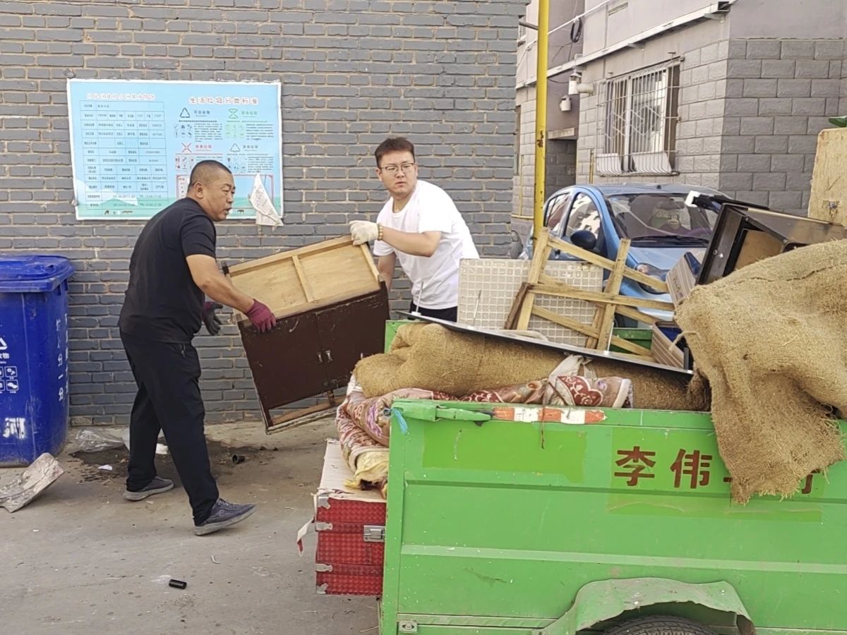 另一组队员与社区工作人员一起进行检查卫生死角、更新垃圾分类标识、清理环境卫生等工作。大家将清理工作细化到社区每个角落,为美化社区环境,规范文明行为发挥了助力作用,用自己的双手,为社区居民营造了干净整洁的生活环境。