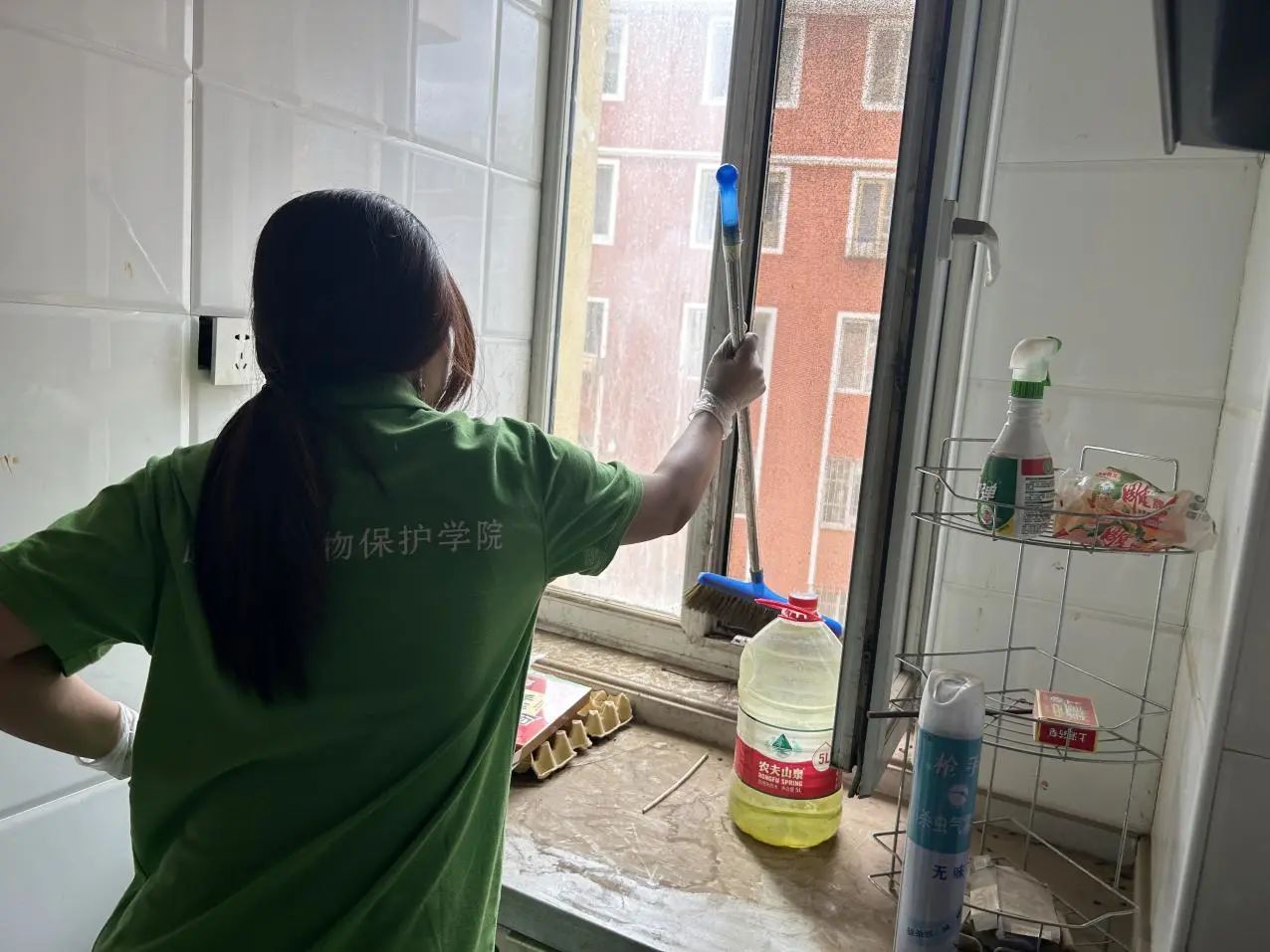 上午,实践队队员们兵分两路,一组队员跟随社区工作人员进行辖区扶危济困活动。宋奶奶是大家今天的帮扶对象,老人行动不便,儿女不能时常照顾,于是实践队员们来到宋奶奶家里进行探望及卫生清理,简单的问候后,队员们很快投入劳动之中,扫地、拖地、整理杂物……大家各司其职,齐心协力,将小屋打扫得干净整洁,宋奶奶也对实践队员们表示了感谢。
