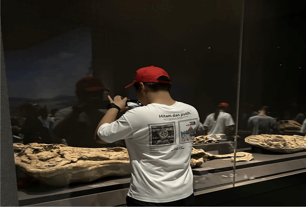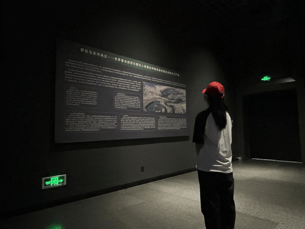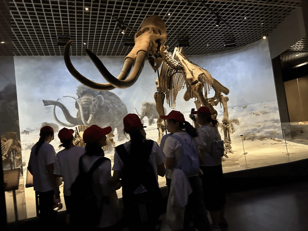 队员们依次排好队在闸机处刷身份证入内,进入大厅首先映入眼帘的是习近平总书记对内蒙古的寄语:建设亮丽内蒙古,共圆伟大中国梦。馆内大致分为四部分:一是内蒙古革命文物陈列,二是内蒙古古生物和古人类陈列,三是内蒙古民族文物陈列,四是历史文物陈列。队员们被陈列在展示柜内化石所吸引,观赏化石,了解曾经的时代变迁,沧海桑田。队员们或拿起手机拍照,留下纪念;或仔细观察化石上面的条理,感知时代;或是研读对不同文物的介绍,增添知识阅历。
