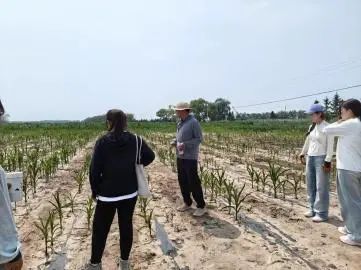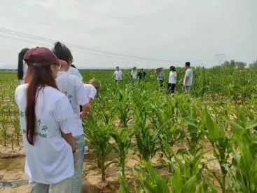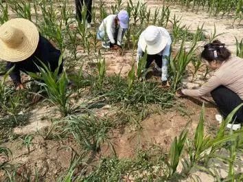 随后,同学们来到试验田参观了玉米植株的栽培方式与玉米单倍体植株的繁育,在国兴老师的带领下认识了试验田的规模和分区,为以后的实践工作奠定基础,接着便进行了简单的田间管理。