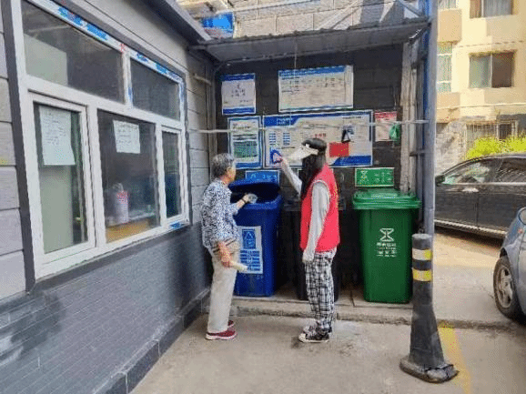 第一组队员主要是打扫社区垃圾分类亭、引导社区居民进行正确的垃圾分类。他们将自己所学到的环境保护知识再次传递给社区居民们,并且以身作则、身体力行,以实际行动证明了“环保无小事”。建设一个干净美丽的社区需要每一位社区成员参与,在大家的共同努力下,社区建设任务必定会取得不错的成绩。