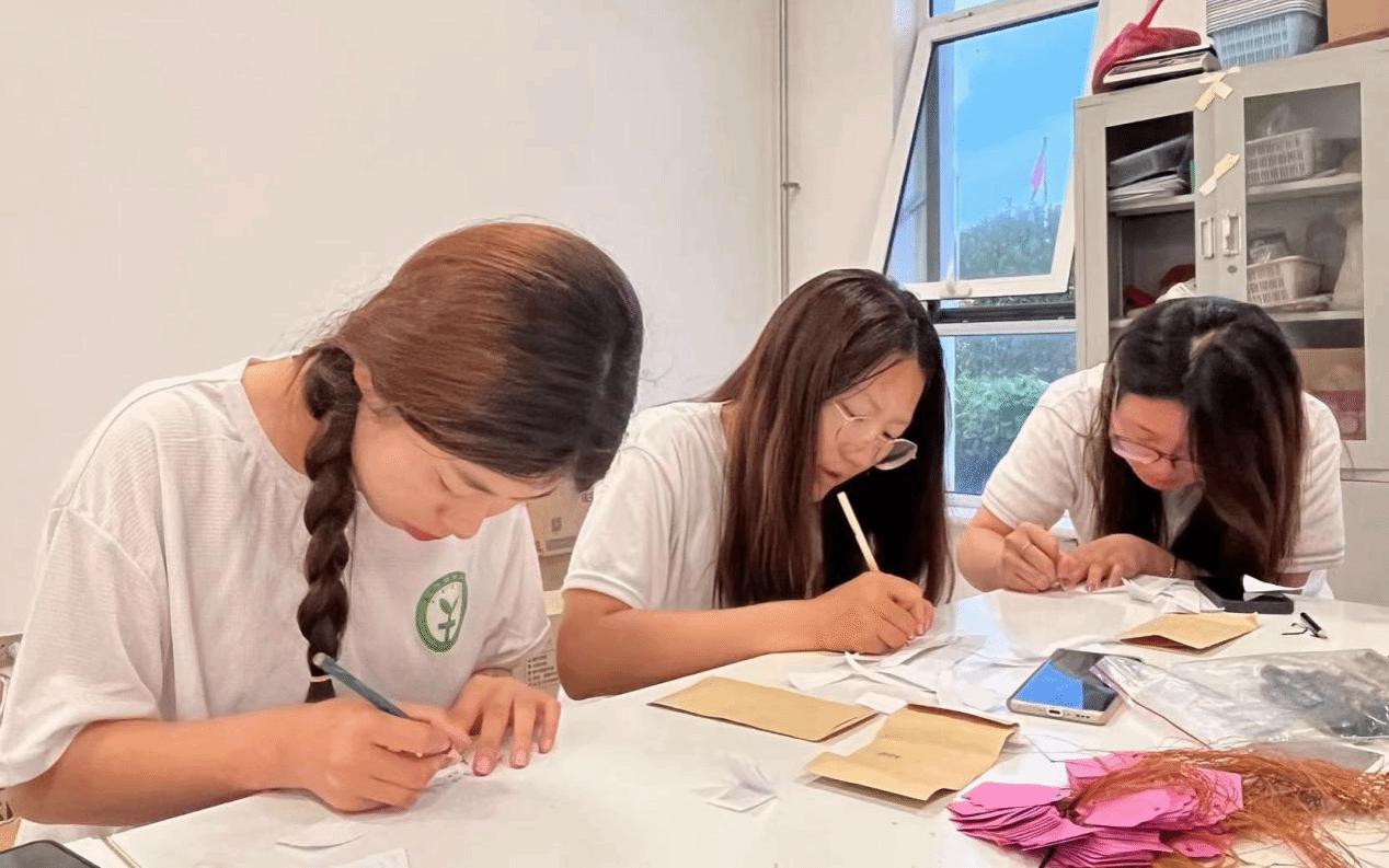 一天的拔草工作结束后,实践队队员们在会议室开展座谈会。贾晓宇队长对本次社会实践活动进行简短总结后,队员们畅所欲言,讲述了自己此次实践活动的感受和收获。通过几天的相处,队员们建立了深厚的友谊,大家通过“卡片寄语”活动,将想说的话写在纸条上,装进写有名字的信封里,给彼此留下最美好的回忆。