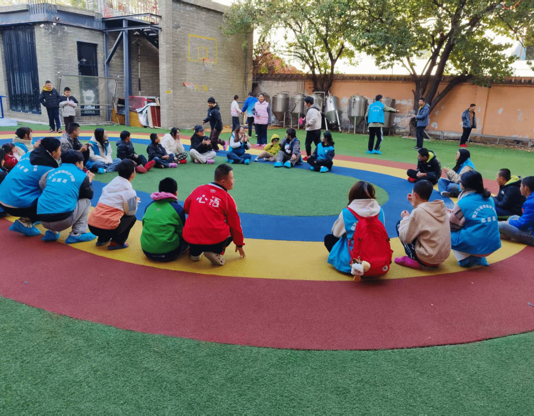 随后,大家来到户外的活动场地。志愿者们和孩子们一起玩起了“老鹰捉小鸡”“丢手绢”等经典游戏,志愿者们全身心投入,和孩子们一同奔跑、嬉戏,每一个笑容都无比真挚,每一次互动都充满温情。
