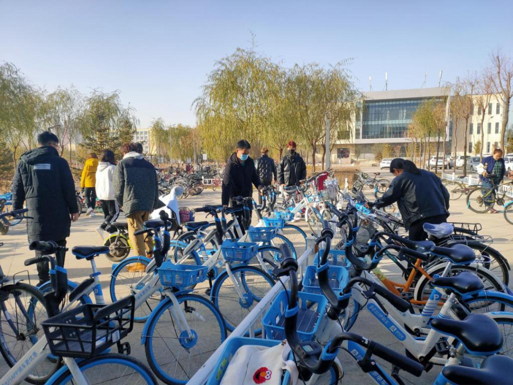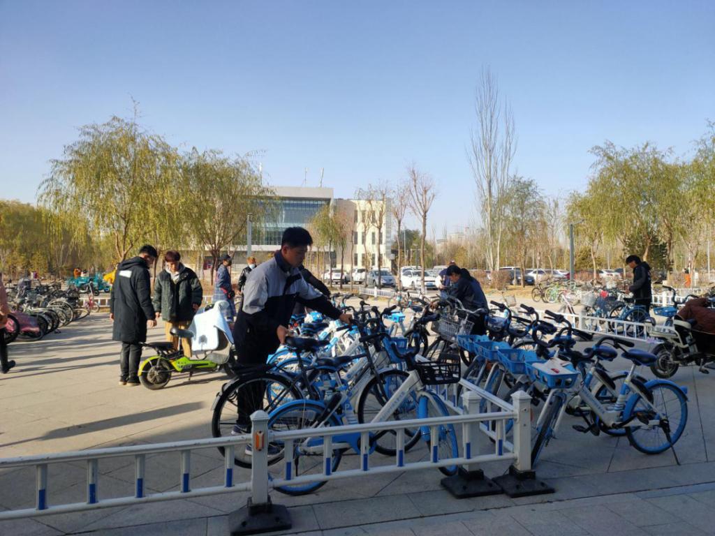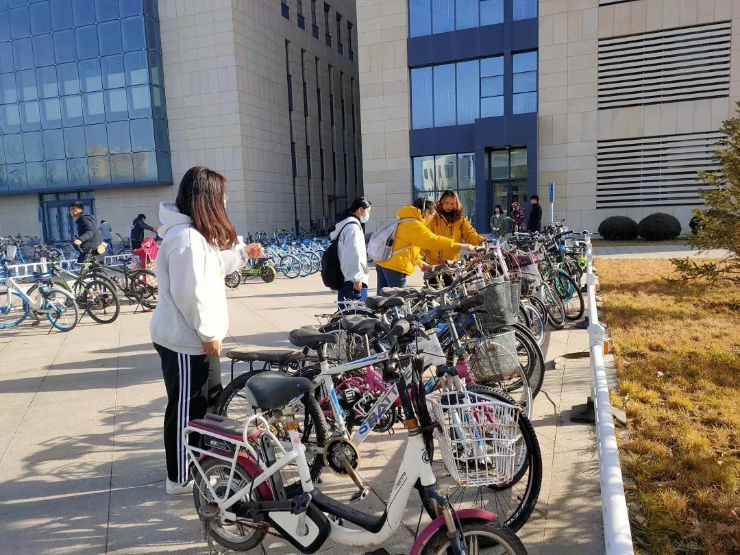 第二期青马班学员与学院部分志愿者组成的志愿者队在新校区开展“单车齐摆放,校园筑清洁”主题志愿服务活动。