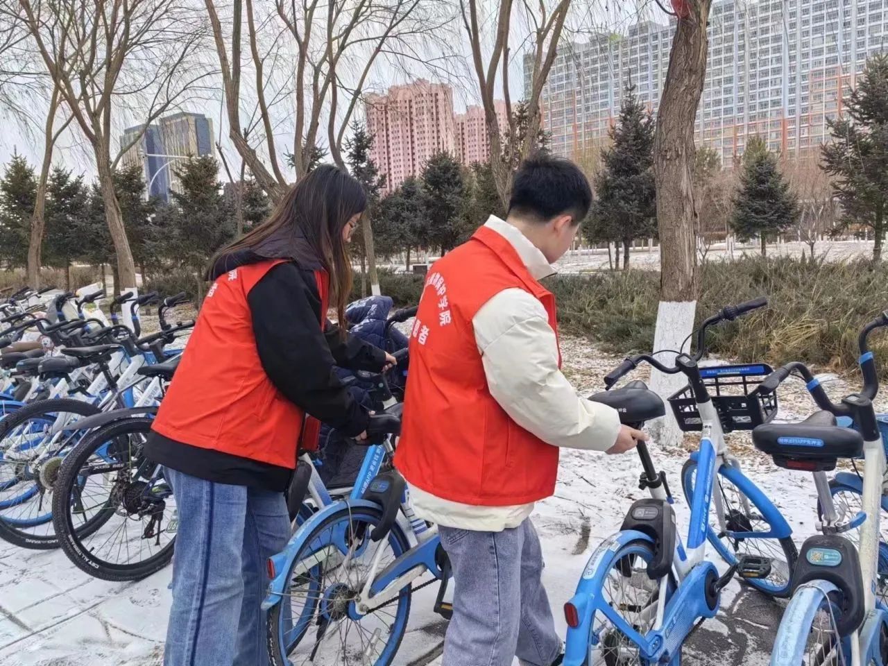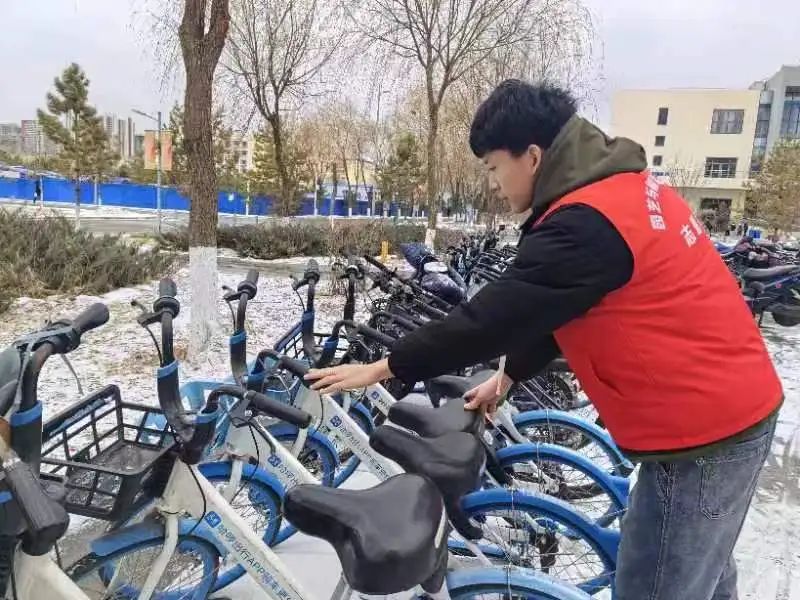 此次活动内容是规范摆放车辆。党员同志们在指定地点集合,明确分工后,大家一一把“摔倒”的自行车扶起来,并将随意停放的电动车和自行车推到指定停放点,经过大家的共同努力,停车区的面貌也焕然一新。