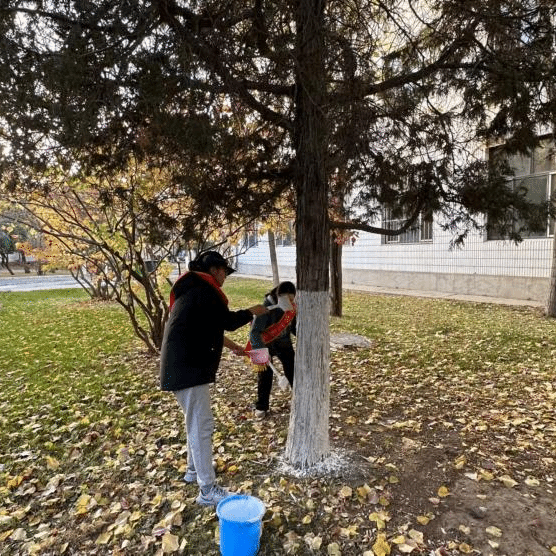 在持续开展的活动中,各班同学在班长和团支书的带领下到达指定地点,携带着工具,进行落叶的清扫,捡道路烟蒂,帮学校工作人员刷树漆等等。充分体现了“奉献、友爱、互助、进步”的志愿服务精神。大家在活动中互相配合,共同协作,共同携手创建美丽的校园。