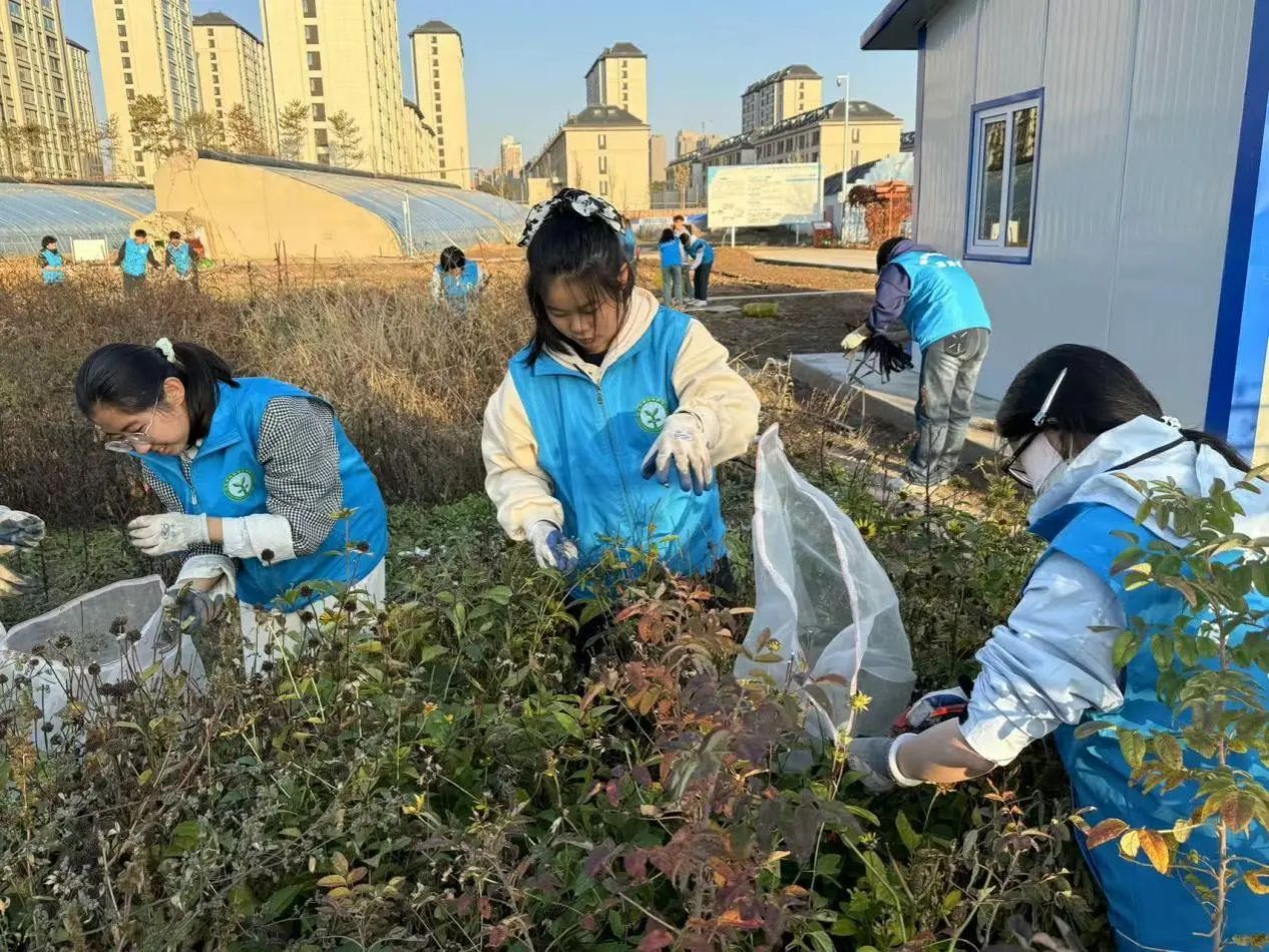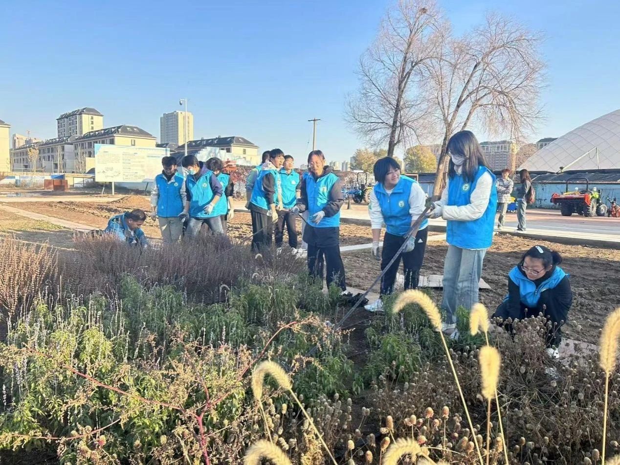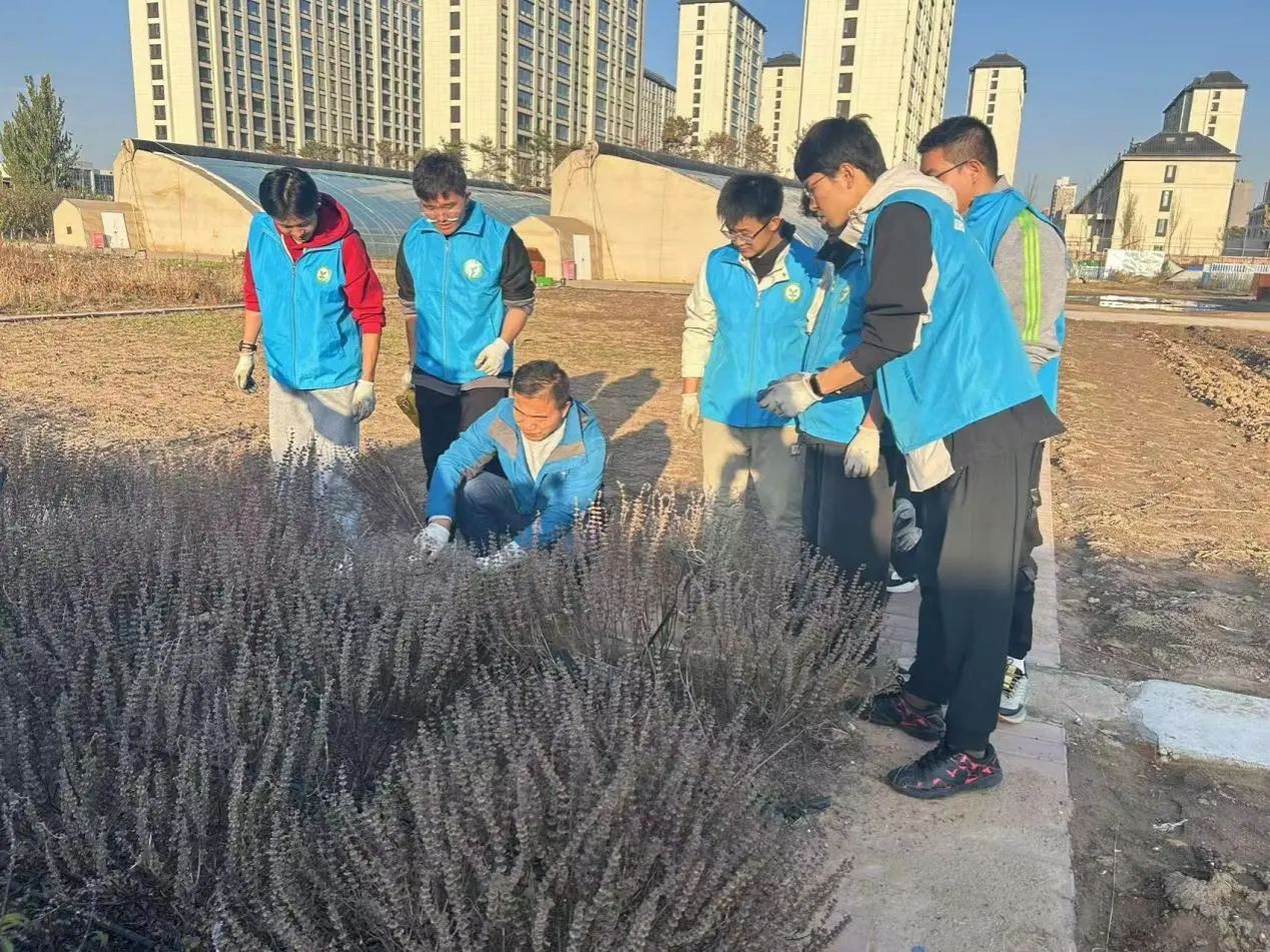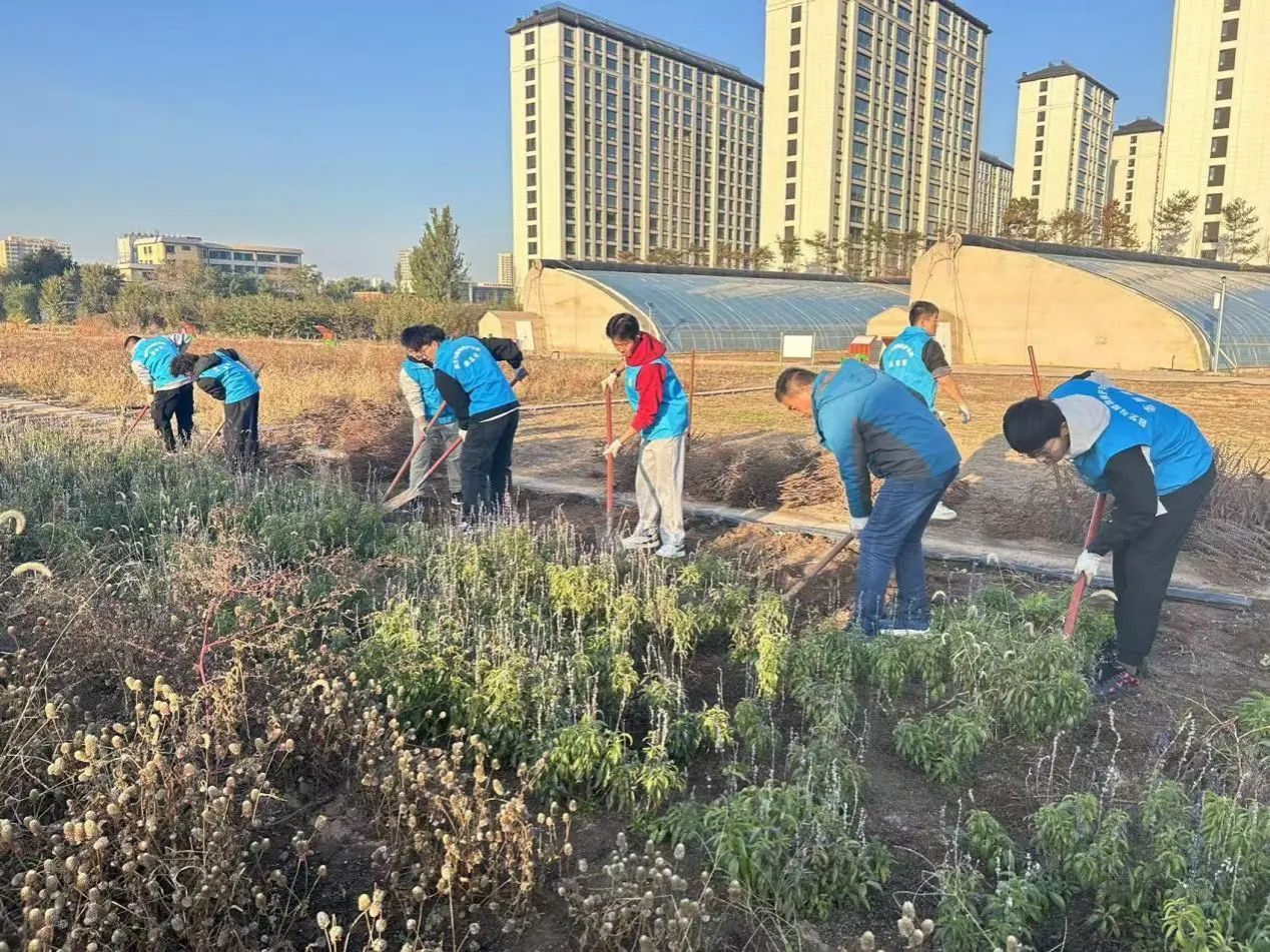 组织志愿者在学校耕读文化教育基地开展劳动教育志愿活动。