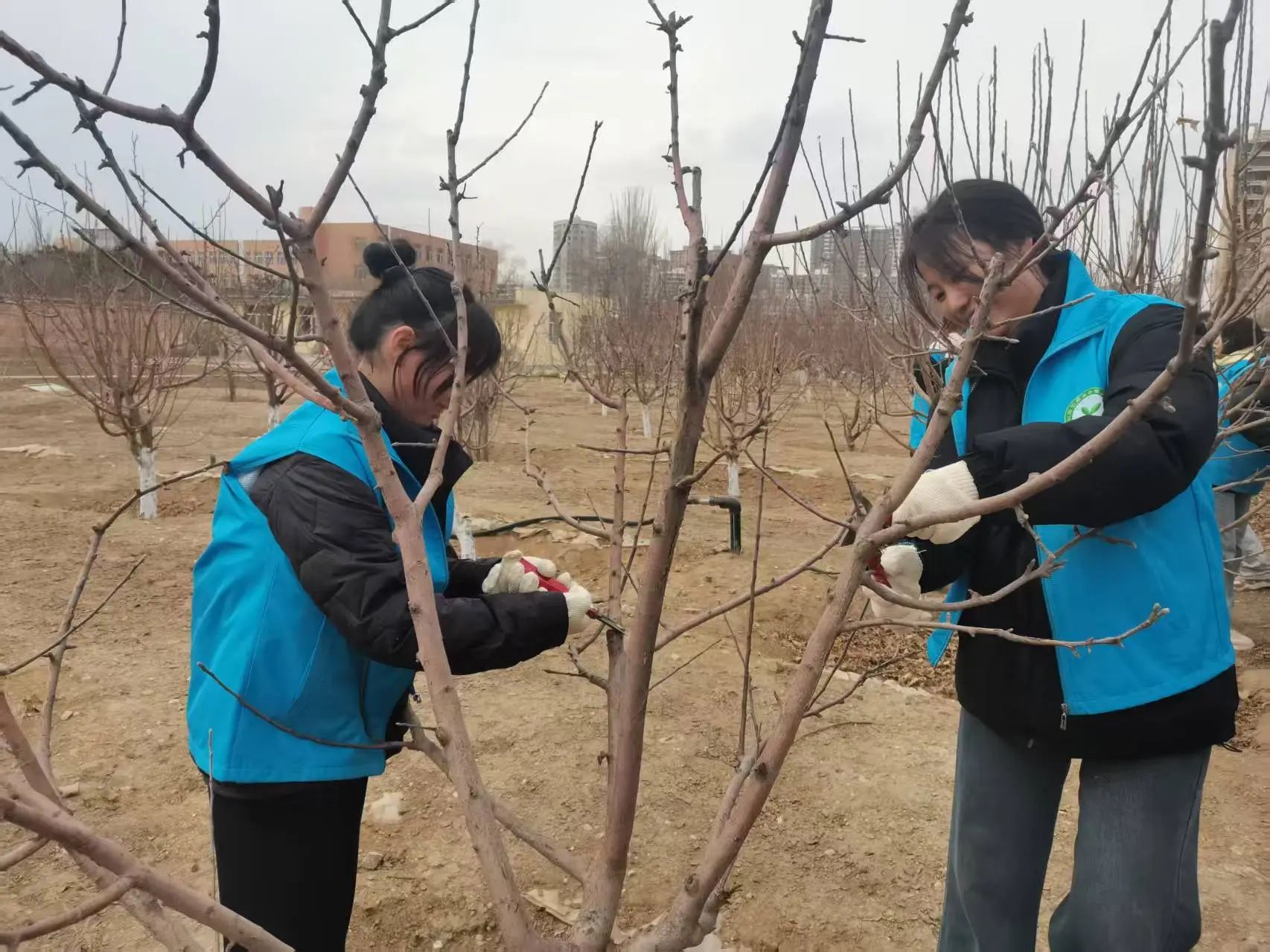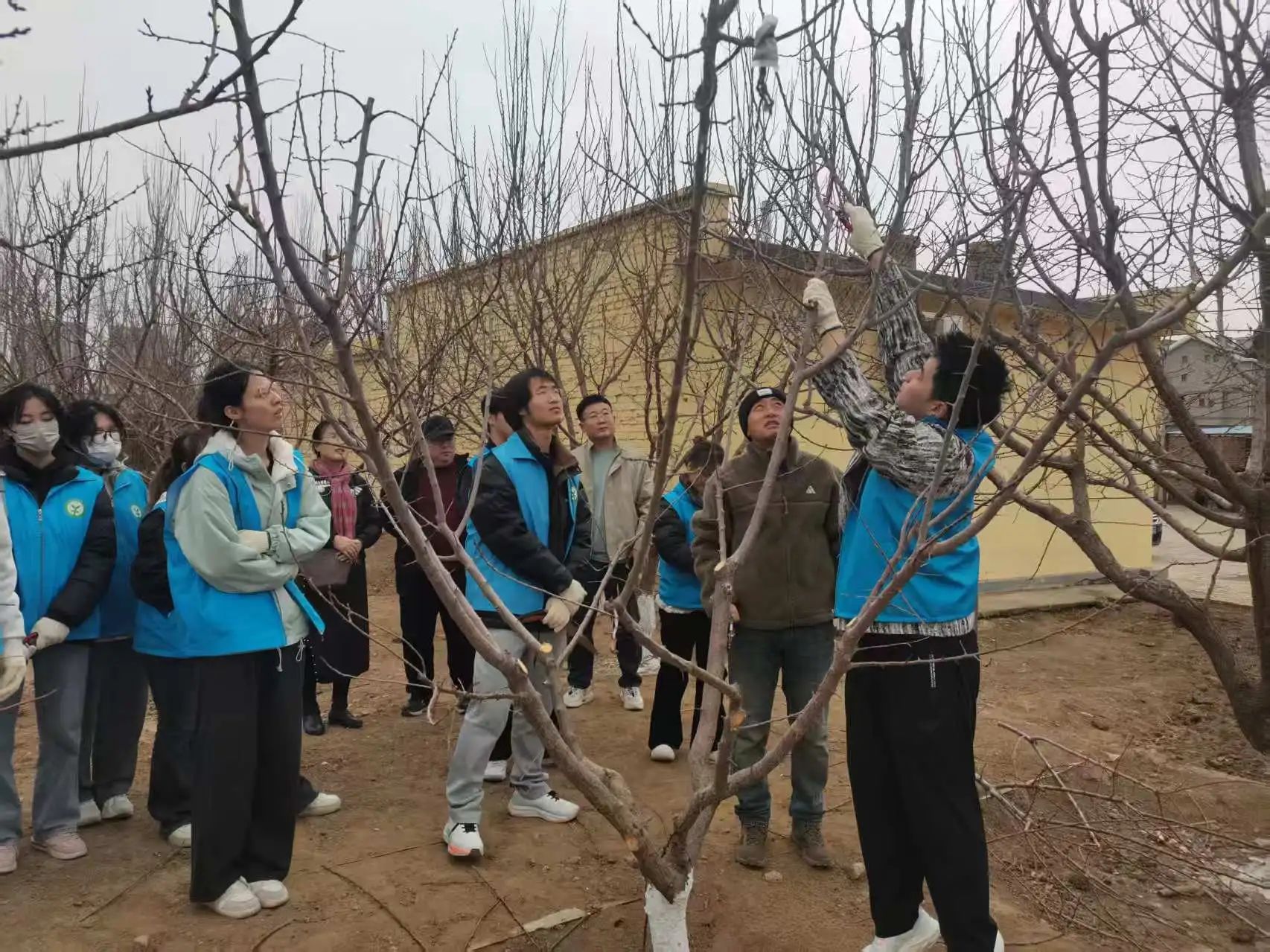 在李老师的指导下,志愿者们拿起剪刀,认真修剪果树枝条,在实践中不断思考并应用课堂所学的知识。通过这次活动,同学们不仅巩固了专业本领,而且通过发挥专业特长为社会贡献力量,真正实现了知行合一。经过一下午的劳动,同学们深刻认识到作为农科学子,应立足农田,服务人民,提升实践能力和社会责任感,用实际行动为农业发展做出更大贡献。
