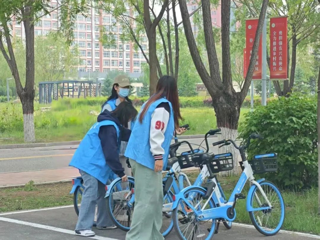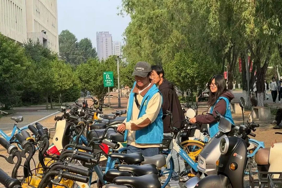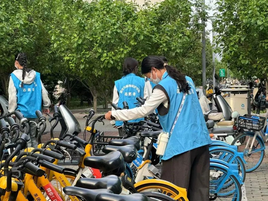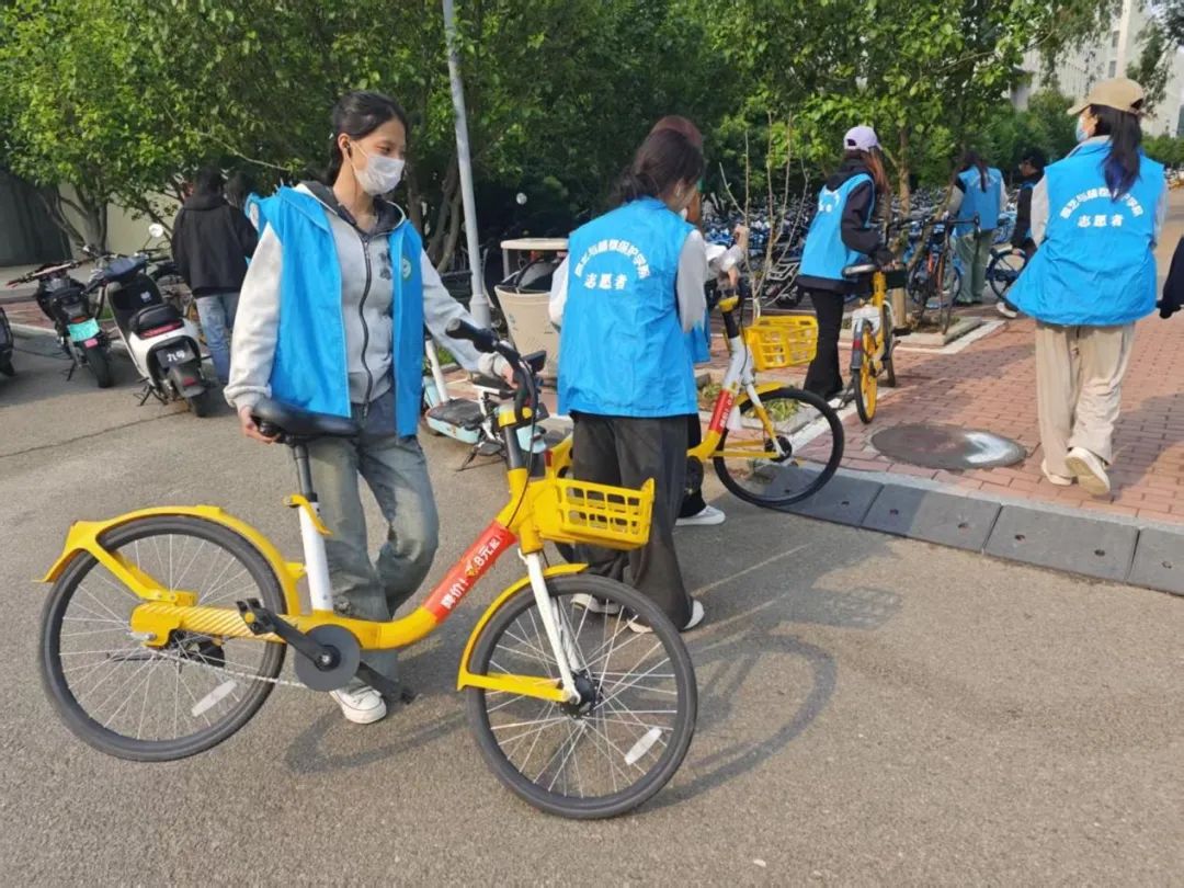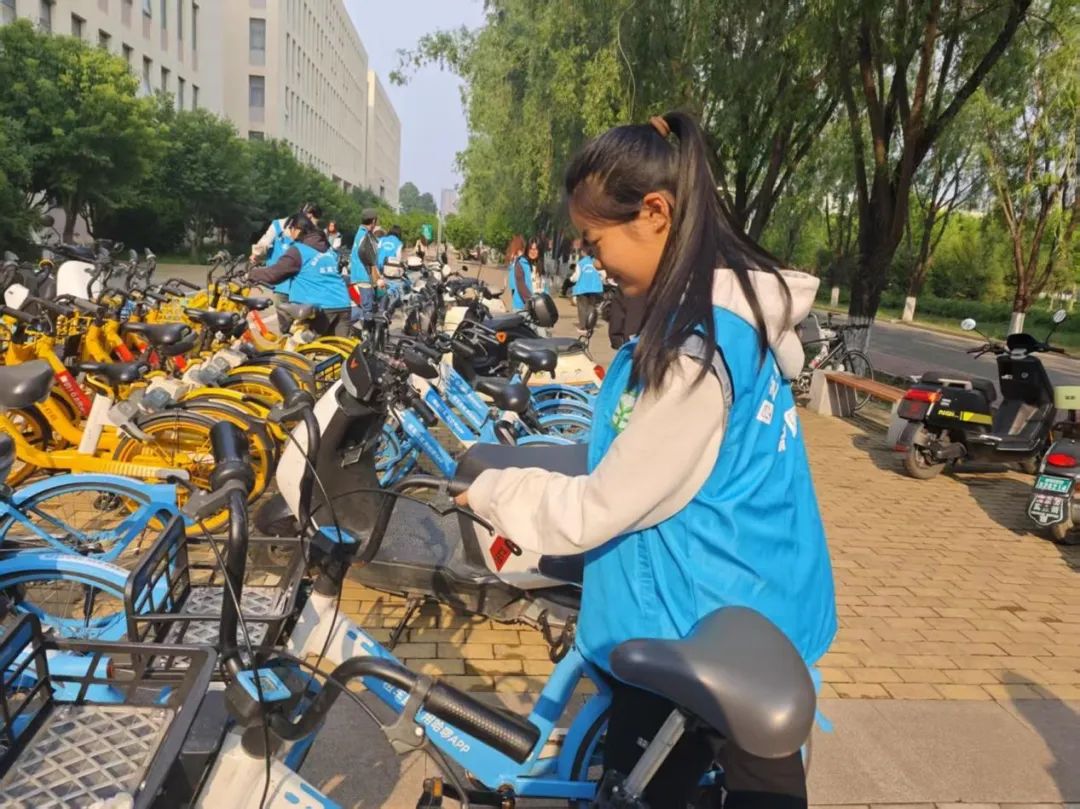 活动当日,志愿者们早早集合,他们身穿统一服装,在简短的培训后,志愿者们分成多个小组,迅速投入到工作中。面对校园中杂乱无章的共享单车,志愿者们分工明确,有的负责将车辆从角落搬运至指定停放区域,有的则按照类别进行分类排列。志愿者带着饱满的热情和十足的干劲投入到单车摆放活动中,大家齐心协力,将单车摆放的井井有条。
