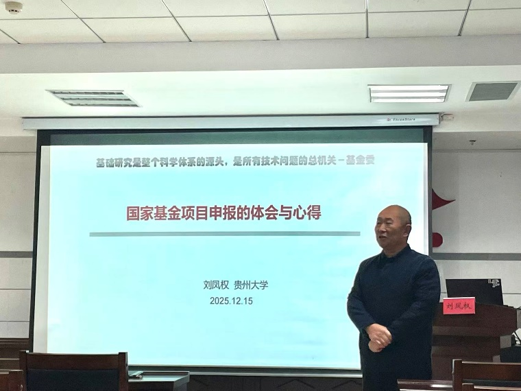 于2025年12月15日在新区生命科学大楼419会议室举办了国家自然科学基金项目申报讲座。本次会议特邀贵州大学农学院知名学者刘凤权教授作为主讲嘉宾。