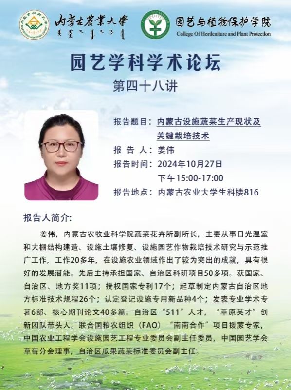 上一条:植物保护学科学术论坛(第七十讲) 下一条:园艺学科学术论坛